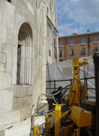 La SONDITALIA Srl avrebbe dovuto eseguire 3 trivellazioni verticali su 3 lati della Ghirlandina a max 15 cm. di distanza dai muri perimetrali e 2 trivellazioni all’esterno dell’abside del Duomo di Modena.